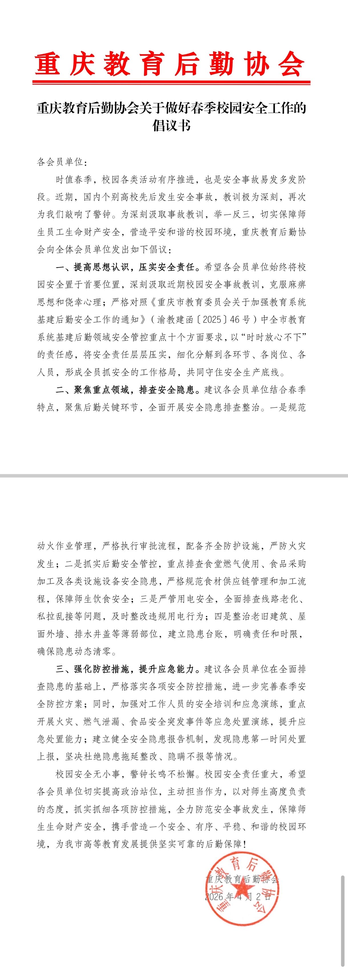 重庆教育后勤线协会关于做好春季校园安全工作的倡议书-重庆教育后勤协会