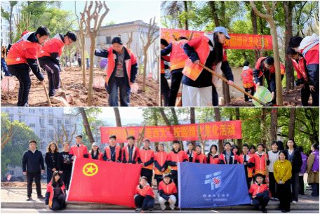 上午9时,文俊楼(南区行政楼)周边一片热火朝天。党委常委、副校长廖晓衡与法学院校友代表、师生代表、西大附中学生及后勤集团职工等500余人共同种下120株紫薇。